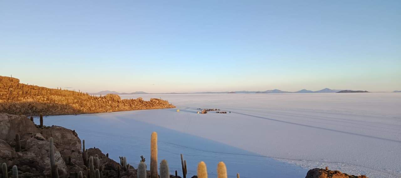 Al mediodía, visitamos la Isla Incahuasi, famosa por sus gigantescos cactus milenarios y formaciones de roca volcánica y fósiles de coral, desde donde se obtiene una vista 360° del salar.